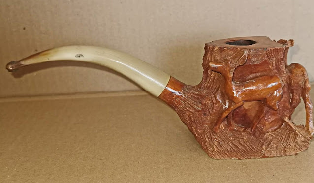 Auch wenn ich die 80 abgehakt habe, meine Leidenschaft an der Werkbank zu stehen und Pfeifen zu fertigen, haben mich dazu bewogen, die Pfeifenfertigung weiter zu betreiben Es gibt deshalb auch wieder eine JP für 2026 - Ich habe entschieden, welche Form sie haben soll- Auf jeden Fall ein klassisches shape - etwas in der Art der 50iger Jahre, die mein Vater und Großvater rauchten. Diese Art der Pfeifen waren damals erheblich kleiner und ohne Filter. Die Tabakbohrung war damals so bemessen, dass der ausgelaugte und getrocknete Hannewacker (Kautabak) und der Rest vom Stumpen (eine kurze glatt beschnittene Zigarre) reinpassten.) In den 50iger Jahren war Tabak kostbar und wurde bis auf den letzten Rest geraucht- Hier eine Pfeife dieser Art (Shagpfeife) im Vergleich zu heutiger gebräuchlichen Pfeifengröße. Shag ist ein Feinschnitttabak, der in diesen kleinen Pfeifen gut geraucht werden konnte und er war sehr preisgünstig. Pfeifen dieser Art wurden zu Tausenden in Ruhla und zB in der Firma HEIBE gefertigt Oft wurden dazu neben Ebonit auch Hornmundstücke s. Bild) verwendet